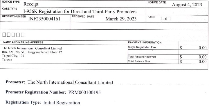 *****北半球移民顧問公司已於第一時間遞交I-956K 獲得登記證號 USCIS Promoter Registration Number : PRM000100195 ***************