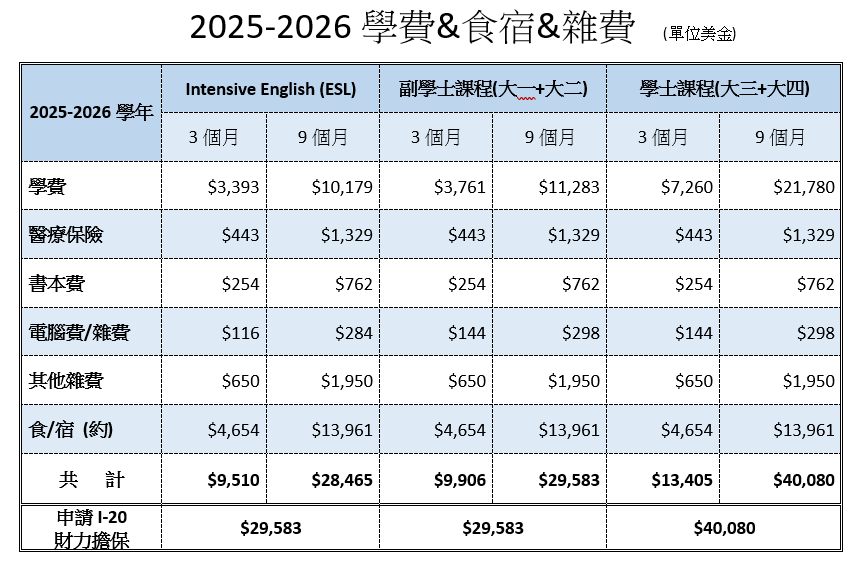 適合國際學生的項目: ESL,高中完成課程 (High School Completion Program),橋梁課程 (IBP),副學士課程 (College Level),證書課程 (Certificate Program)及大學學位課程 (Bachelor Level)。